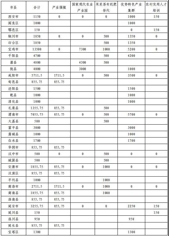 (一)推进产业强镇示范建设。中央财政转移支付拨付我省产业强镇示范建设资金 6846 万元。按照农业农村部、财政部公布的 2020 年农业产业强镇建设名单,安排渭南市华阴市华西镇等 8 个产业强镇每个补助 855.75 万元。